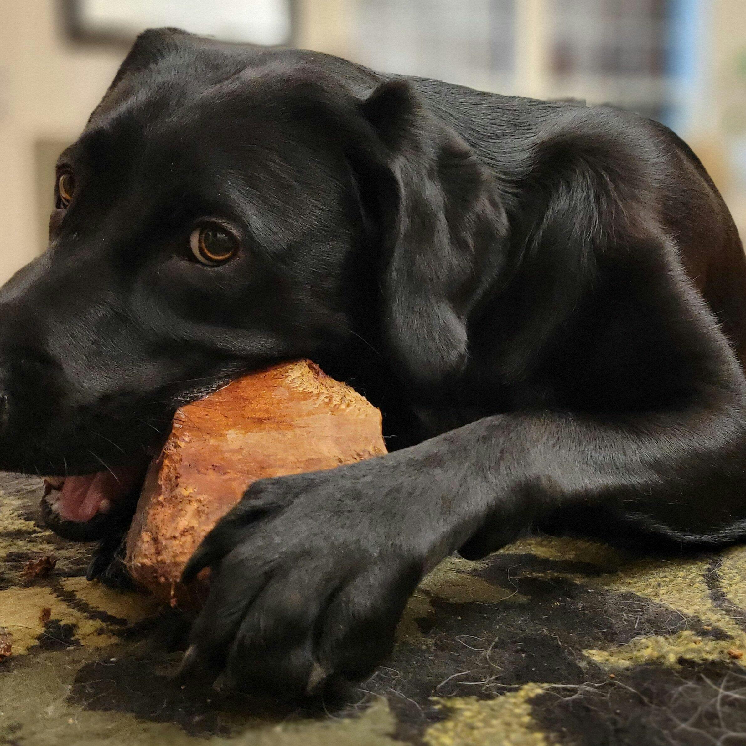 Phoebe is a Stickaholic she doesn’t wait for the stick to fall out of a tree, if she can reach it she will try to break off her own. I saw your product on Amazon searching for something she could chew on but was good for her, didn’t splinter. We bought the 1st one (r) in November 2025 and we just bought another(l).